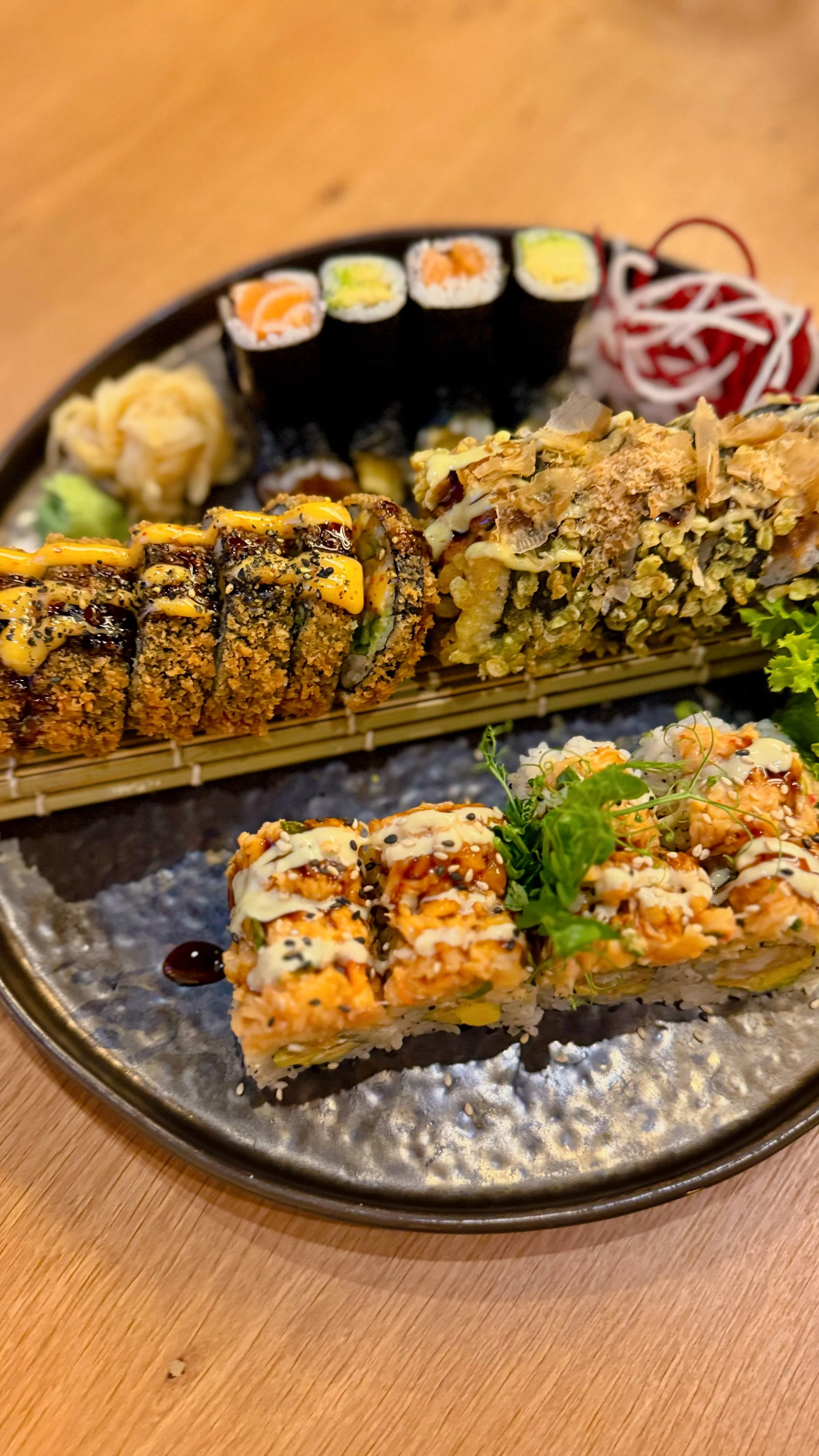 Mein Highlight: die Sushi-Kreationen. Keine Lust auf langweilige Makis? Dann seid ihr hier richtig. Natürlich gibt es auch die Klassiker und die sind auch sensationell gut, aber eben auch außergewöhnlichere Kreationen wie frittiertes, knuspriges Sushi oder interessante Kombination der Zutaten. Hier ein paar Beispiele:
